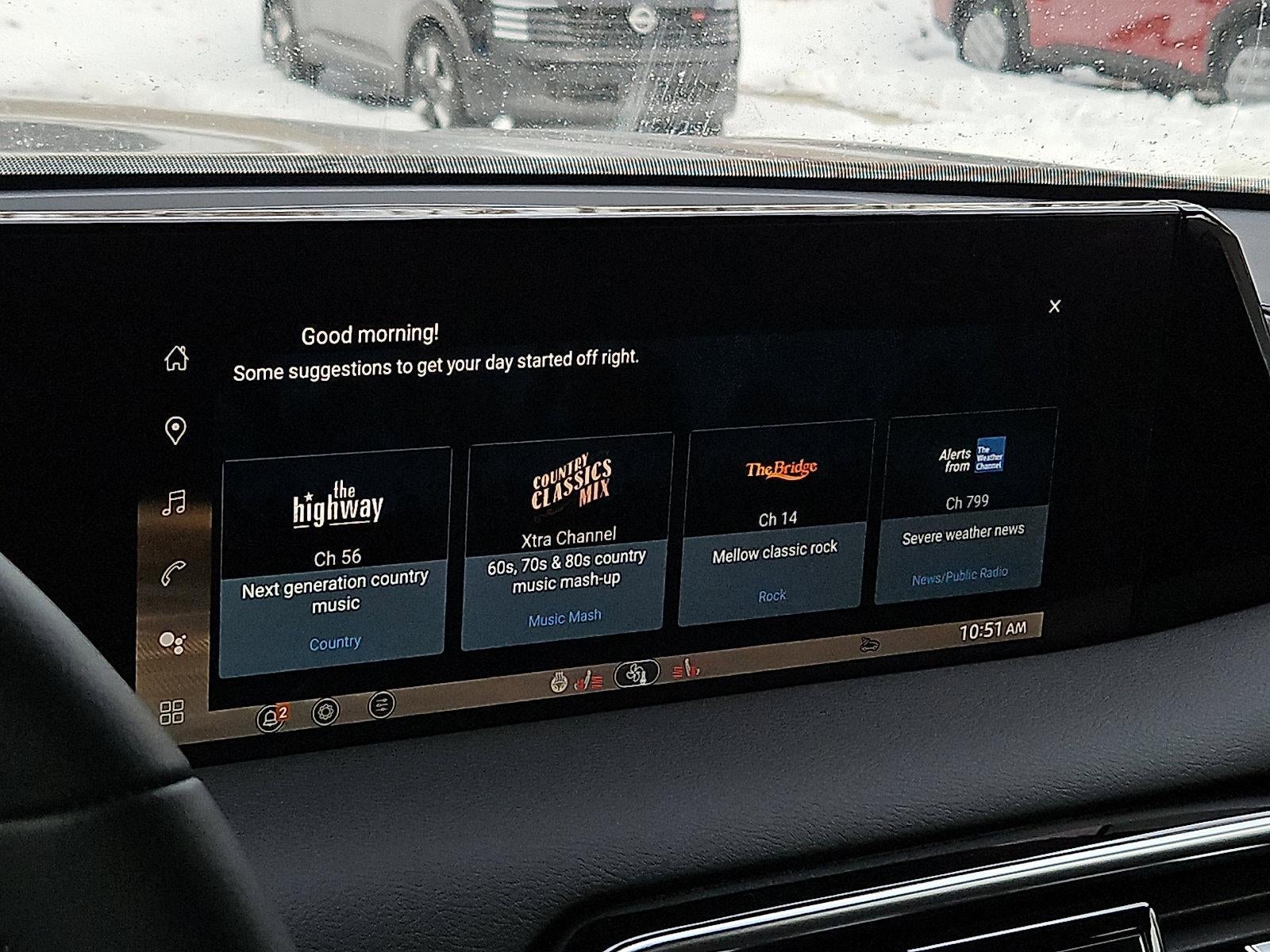 - Radio: NissanConnect w/SiriusXM 360L -inc: 12 speakers Klipsch premium audio system, 12.3" center touch-screen display, wireless Apple CarPlay and Android Auto, Google built-in data services (including Google Assistant, Google Playstore, and Google Maps), Bluetooth® hands-free phone system, Siri Eyes Free, hybrid radio, 5G capability, 2 USB type-C connection ports in front, Amazon Alexa w/Hotword, voice recognition and system controlled navigation w/traffic information