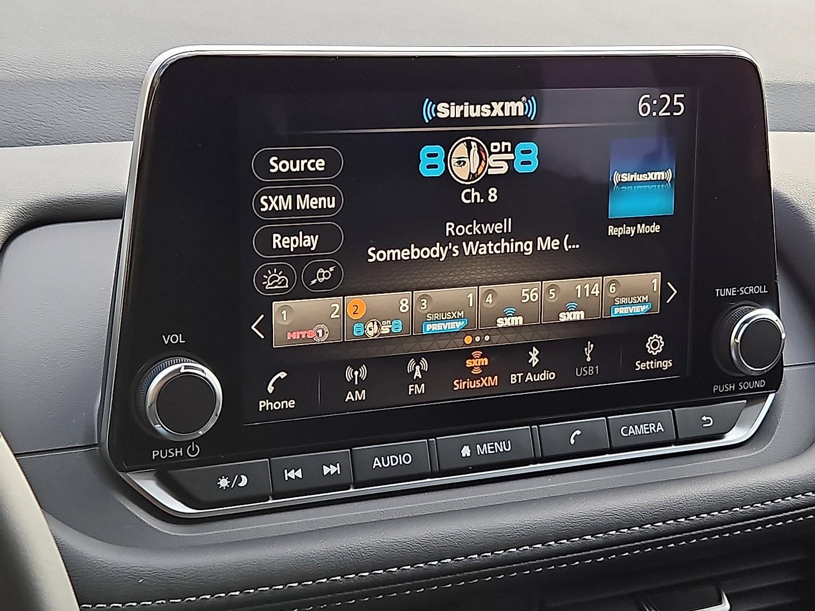 - Radio: AM/FM NissanConnect -inc: 6 speakers plus 2 tweeters, Apple CarPlay, Android Auto, 8" color touch screen display, Bluetooth®, 2 front USB type-C, Wi-Fi hotspot and NissanConnect Services powered by SiriusXM