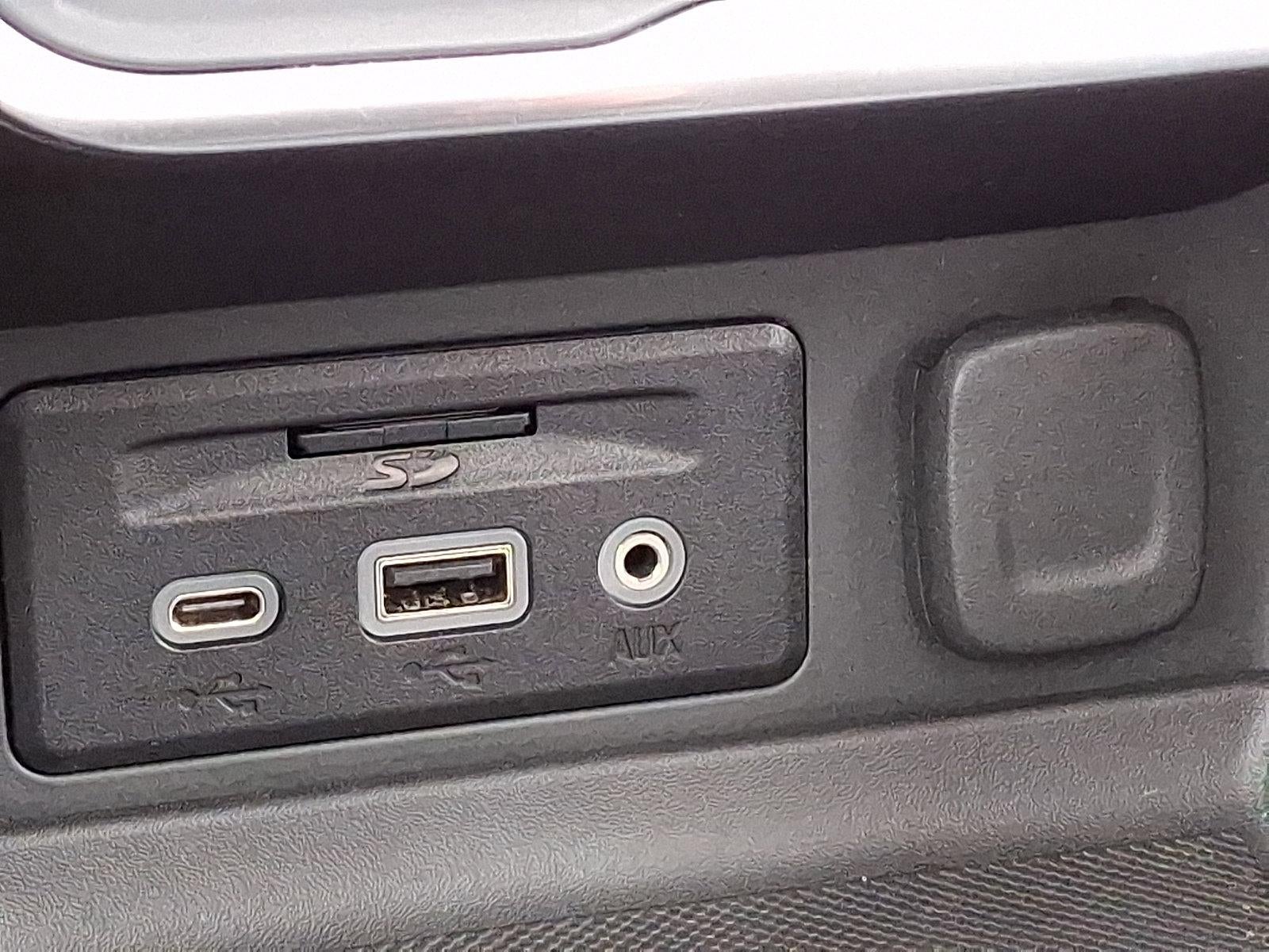 - USB data ports, 2, one type-A and one type-C includes auxiliary input jack, located in front center storage bin