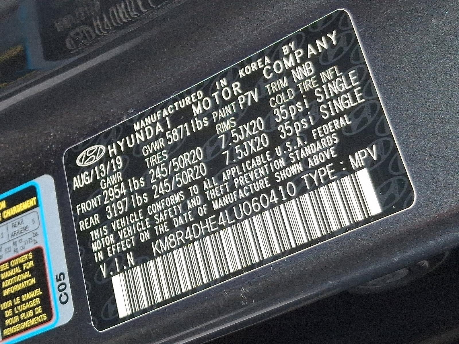 2020 Hyundai Palisade SEL 8-Speed Automatic with SHIFTRONIC **Just Serviced Here!, 115-Volt AC Power Outlet, 3rd Row USB Outlets, 7" High Resolution Cluster Display, Auto Leveling Rear Suspension, Convenience Package P2, Hands-Free Smart Liftgate w/Auto Open, LED Taillights, Parking Distance Warning - Forward, Rear Side Window Sunshades, Ultrasonic Rear Seat Occupant Minder, Wheels: 20"x 7.5J Split 5-Spoke Machined Alloy, Wireless Phone Charger.