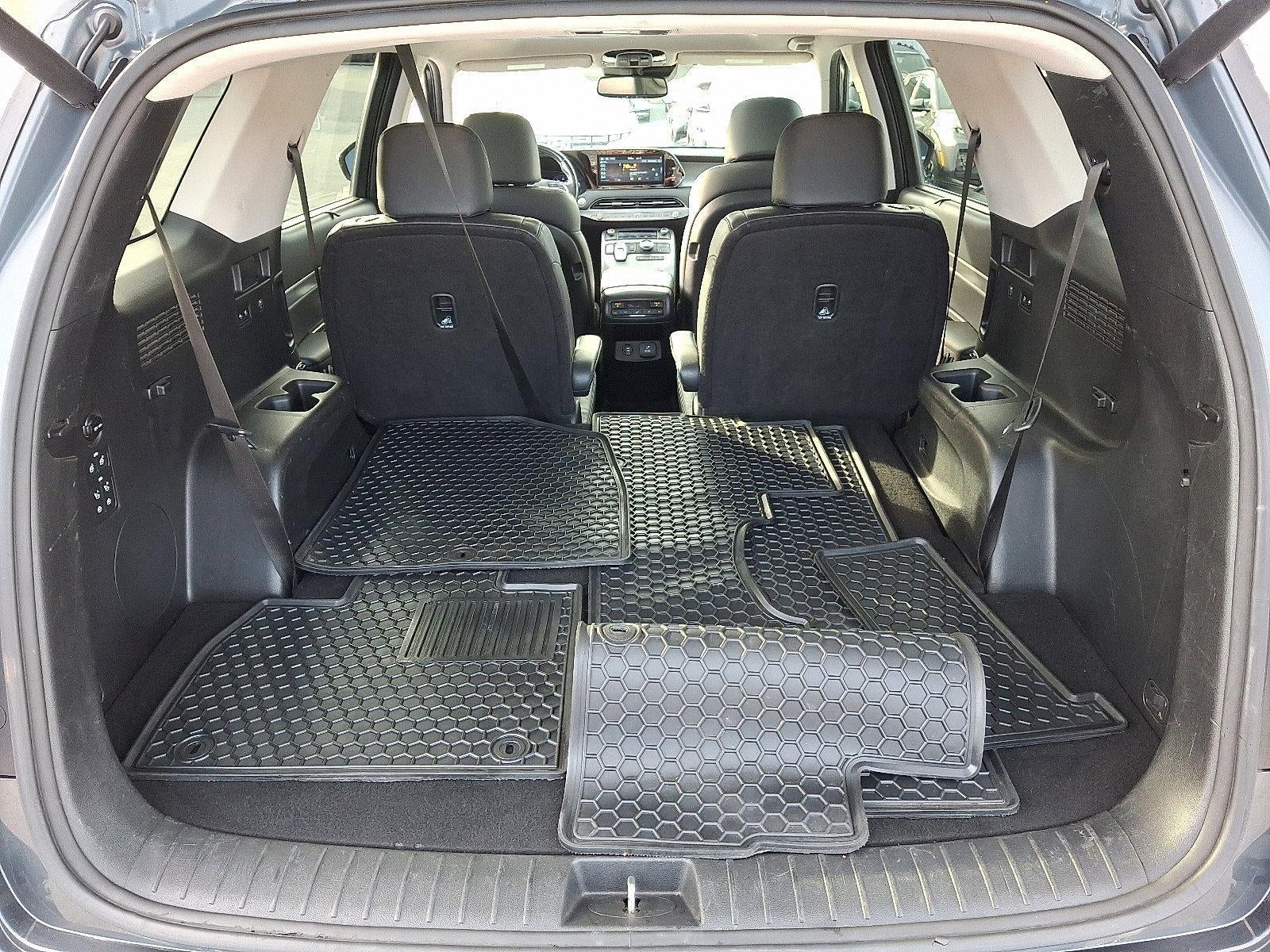 - PREMIUM & DRIVE GUIDANCE -inc: Convenience Package P2, Wheels: 20"x 7.5J Split 5-Spoke Machined Alloy, Tires: 245/50R20, LED Taillights, 3rd Row USB Outlets, 115-Volt AC Power Outlet, Auto Leveling Rear Suspension, Hands-Free Smart Liftgate w/Auto Open, 7" High Resolution Cluster Display, Ultrasonic Rear Seat Occupant Minder, Level 2, ultrasonic sensor sensor and Blue link integration, Rear Side Window Sunshades, Wireless Phone Charger, Parking Distance Warning - Forward, Premium Package P3, Bi-LED Headlights, Heated 2nd Row Seats, Power 3rd Row Seating, power folding, unfolding and reclining, 8-Way Power Adjustable Passenger Seat, height adjustment, Heated Steering Wheel, Artificial Leather-Wrapped Dashboard, soft artificial leather door armrests, Integrated Memory System, memory for driver seat and outside mirrors, Power Sunroof P5, LED interior/map lamps, Drive Guidance P6, Highway Drive Assist I (HDA), Radio: AM/FM/MP3 Premium Audio System, 10.25" color touchscreen, on-board navigation, traffic flow including incident data via HD Radio (HERE), SiriusXM radio, HD Radio, Apple CarPlay & Android Auto, Blue Link Connected Car system, quiet mode, multiple device connection (up to 2 devices), Driver talk (in-car intercom), USB/Auxiliary input jacks, rearview monitor w/parking guidelines and Bluetooth® hands-free w/wireless audio streaming (10-0)