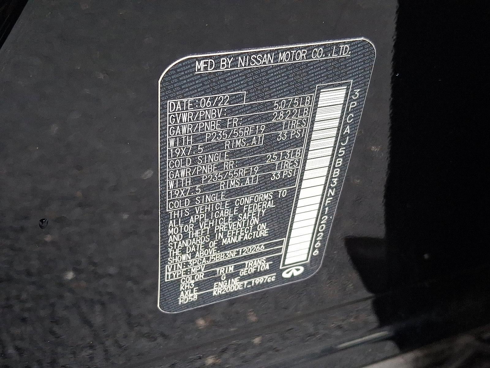 Certified. 2022 INFINITI QX50 LUXE AWD I4 CARFAX One-Owner.
