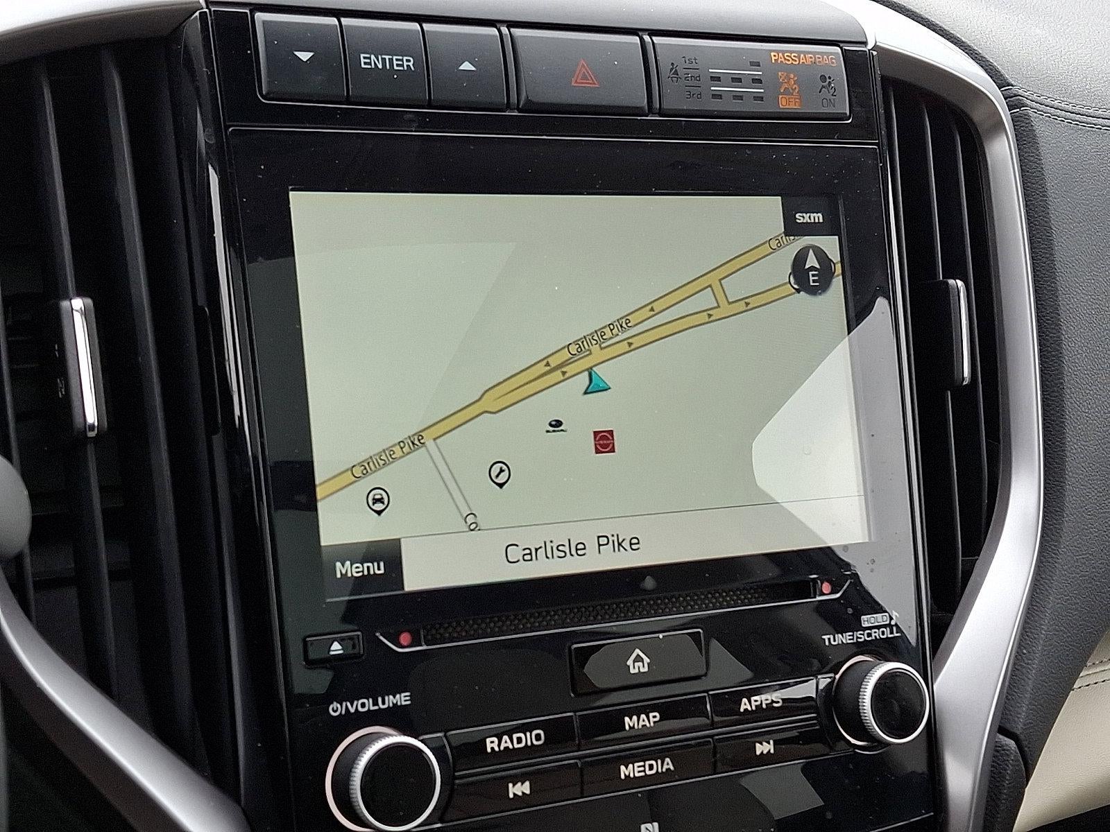 - TECHNOLOGY PACKAGE -inc: Cargo Area Cover, Dual Glass Panoramic Power Moonroof, front tilt up and external retracting w/auto-open/close, power sunshade and rear fixed glass, Radio: Subaru STARLINK 8.0" Multimedia Nav System, AM/FM stereo HD Radio w/single disc CD player, MP3/WMA/CRR/RW file capability, multi-touch gesture high resolution display screen, voice activated controls for radio and navigation, Bluetooth® audio streaming and hands-free phone connectivity (refer to subaru.com for cell phone compatibility), Bluetooth® hands-free SMS text messaging connectivity (refer to subaru.com for cell phone compatibility), Near Field Communication (NFC), iPod control capability, SiriusXM All Access radio (4 months free trial/subscription required after), SiriusXM Travel Link (3 years free trial/subscription required after), SiriusXM Traffic (3 years free trial/subscription required after), smartphone integration for Aha, Android Auto, Apple CarPlay, Pandora and STARLINK cloud applications, TomTom navigation system update w/USB/Map Over The Air (MOTA) (3 years free map updates), steering wheel controls for audio and Bluetooth®, harman/kardon quantum logic surround sound speaker system w/14 speakers, subwoofer and harman/kardon 792 watt equivalent maximum output amplifier, 3.5mm auxiliary input jack and front, second and third row dual USB ports (23-0)