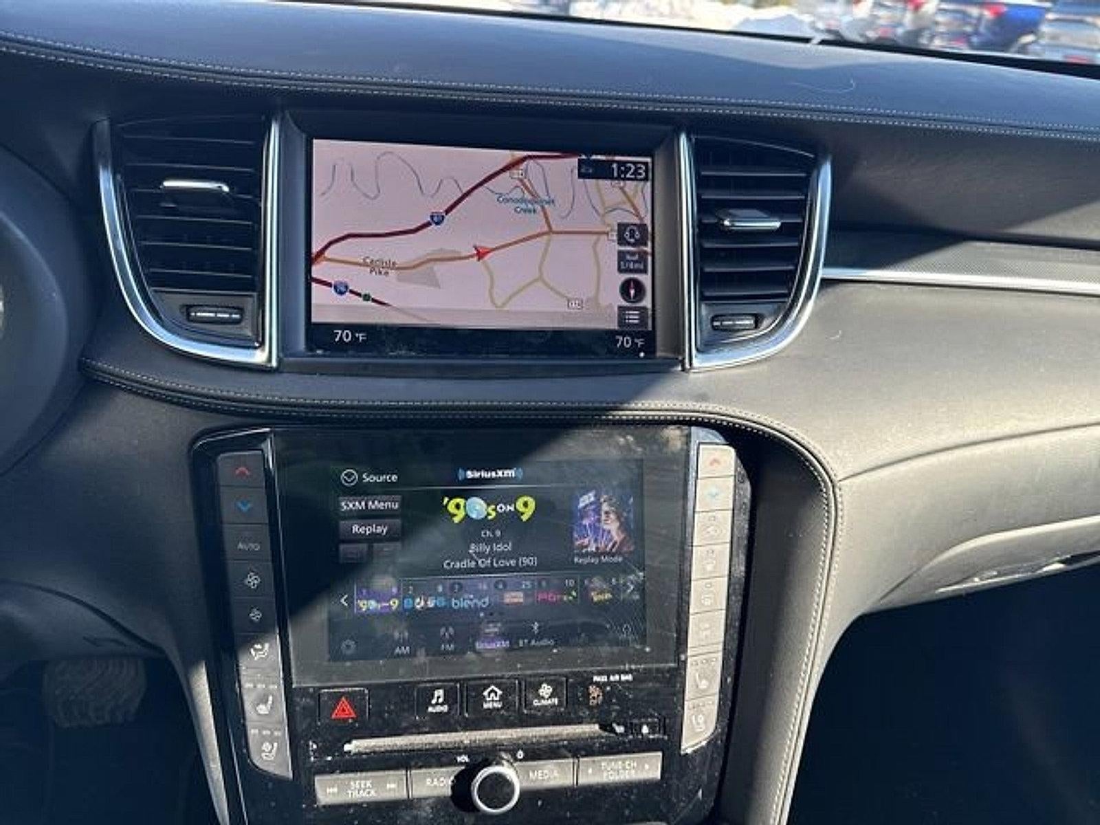- Radio: Bose Premium Audio System -inc: 12 speakers, metallic speaker grilles on tweeters, INFINITI InTouch, INFINITI InTouch services, INFINITI InTouch dual display system w/upper 8" and lower 7" HD touch screens, wireless Apple CarPlay, Android Auto, HD radio technology, SiriusXM radio w/advanced audio features and 90-day complimentary trial, INFINITI voice recognition, Siri Eyes Free, Wi-Fi hotspot, active noise cancellation, navigation w/3D building graphics, 5 year complimentary access to premium traffic and MapCare, SiriusXM Traffic w/3 month complimentary trial access to real-time traffic information and SiriusXM Travel Link w/3 month complimentary trial access to weather, fuel prices, stock prices, sport scores, movie listings and parking