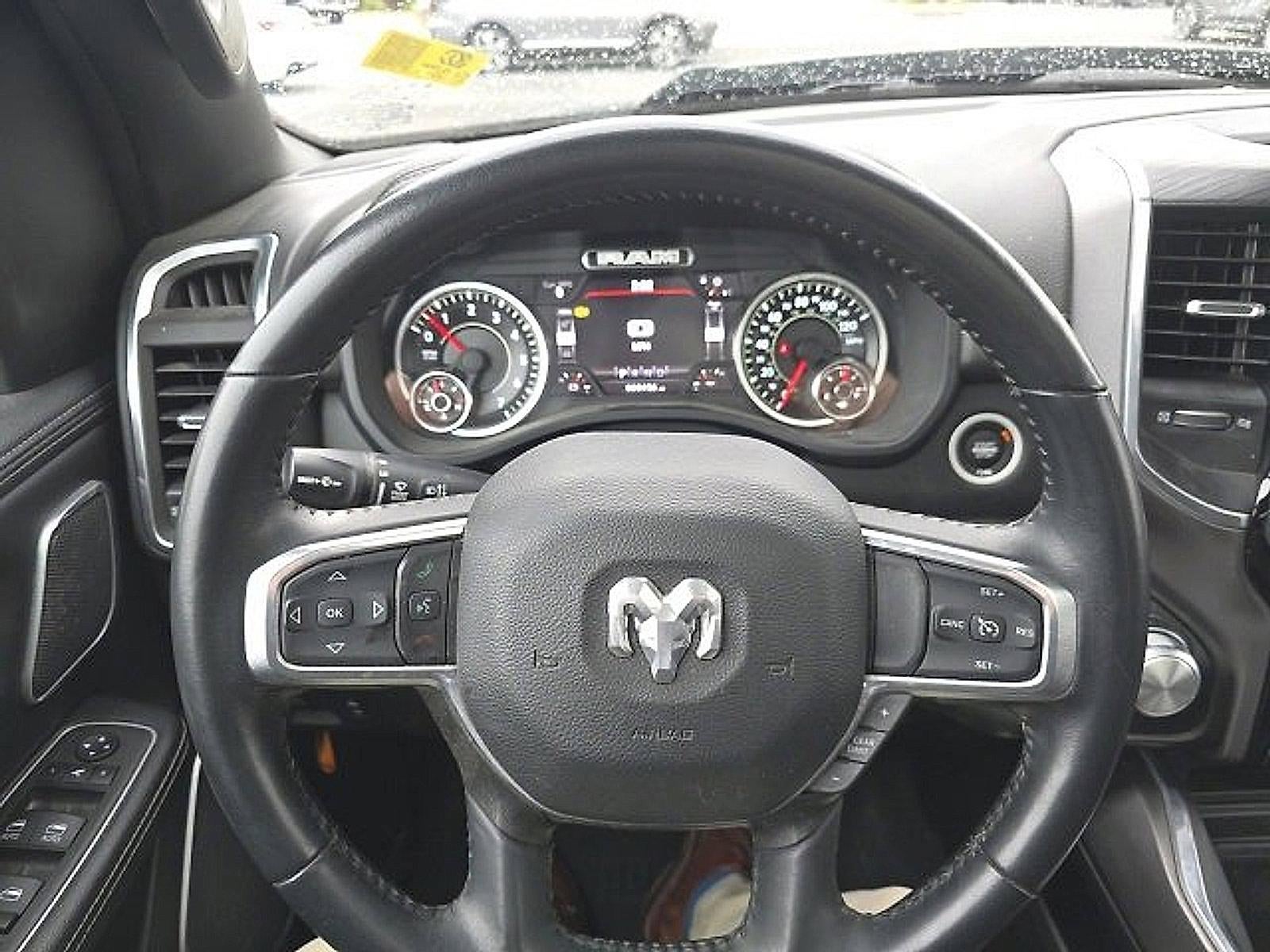 *Backup Camera*, *Bluetooth® Hands-Free Calling*, *Built-in USB ports*, *Remote Engine Start*, *Leather Seats*, *Heated Seats*, *Sunroof/Moonroof*, *Push Button Start*, *Navigation / GPS*, *Alloy Wheels*, *Apple Car Play*, *Android Auto*, *Forward Emergency Braking*, *Adaptive Cruise Control*, *Multizone Climate Systems*, *Rear Climate Package*, *Touch-Screen Display*, 1500 Laramie, HEMI 5.7L V8 Multi Displacement VVT eTorque, 12" Touchscreen Display, 3 Rear Seat Head Restraints, 3.21 Rear Axle Ratio, 4 Way Front Headrests, 4-Wheel Disc Brakes, 4G LTE Wi-Fi Hot Spot, ABS brakes, Accent Color Door Handles, Accent Color Premium Power Mirrors, Apple CarPlay, Apple CarPlay/Android Auto, Auto High Beam Headlamp Control, Auto-Dimming Exterior Driver Mirror, Auto-dimming Rear-View mirror, Automatic temperature control, Black Exterior Truck Badging, Black Headlamp Bezels, Black Interior Accents, Black Painted Exterior Mirrors Caps, Blind Spot & Cross Path Detection, Body Color Front Bumper, Body Color Rear Bumper w/Step Pads, Bucket Seats, Center Console Parts Module, Connected Travel & Traffic Services, Convex Wide-Angle Exterior Mirror Insert, Disassociated Touchscreen Display, Dome Dual LED Reading Lamp, Driver Seat Memory, Dual Exhaust w/Black Tips, Dual front impact airbags, Dual front side impact airbags, Dual-Pane Panoramic Sunroof, Electric Shift-On-Demand Transfer Case, Exterior Mirrors Courtesy Lamps, Exterior Mirrors w/Heating Element, Exterior Mirrors w/Supplemental Signals, For More Info, Call 800-643-2112, Front Door Accent Lighting, Front fog lights, Front LED Fog Lamps, Front Seat Back Map Pockets, Garage door transmitter, Google Android Auto, GPS Antenna Input, GPS Navigation, Grille Surround 3 Black Texture 2 Black, harman/kardon 19 Speaker Premium Sound, HD Radio, Heated Front Seats, Heated Steering Wheel, Integrated Center Stack Radio, Integrated Voice Command w/Bluetooth®, Laramie Level B Equipment Group, Leather Trimmed Bucket Seats, LED Dome/Reading Lamp, LED Reflector Headlamps, Memory seat, Navigation System, Night Edition, ParkSense Front/Rear Park Assist w/Stop, Pedal memory, Power 2-Way Driver Lumbar Adjust, Power 2-Way Passenger Lumbar Adjust, Power 8-Way Driver & Passenger Seats, Power passenger seat, Power-Folding Mirrors, Quick Order Package 27H Laramie, Radio: Uconnect 5 Nav w/12.0" Display, Rain Sensitive Windshield Wipers, RAM Grille Badge - Black, Rear 60/40 Folding Seat, Rear Door Accent Lighting, Rear Power Sliding Window, Rear Underseat Compartment Storage, Rear Window Defroster, Remote keyless entry, Remote Tailgate Release, SiriusXM Radio Service, SiriusXM w/360L, Sport Performance Hood, USB Host Flip, Ventilated Front Seats, Wheels: 22" x 9" Forged Aluminum.